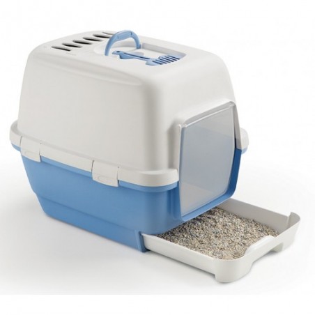 La maison toilette Cathy permet au chat de faire ses besoins en toute intimité. Grâce à son filtre à charbon intégré au toit, cette maison de toilette permet de neutraliser efficacement les mauvaises odeurs.