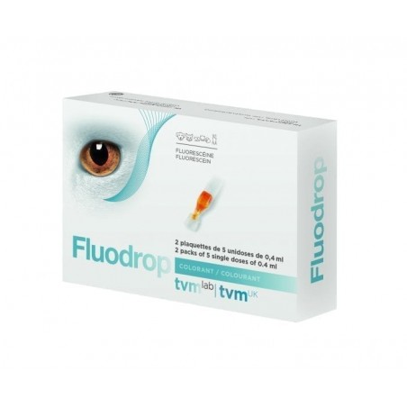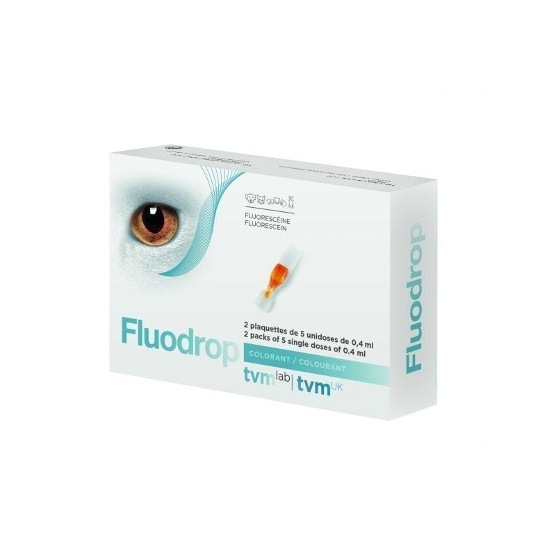 Fluodrop TVM est est un collyre colorant pour diagnostique animal qui traite les ulcères cornéens des chiens et des chats. La fluorescéine est un colorant dépourvu d’activité pharmacologique dont la couleur change en fonction du pH.