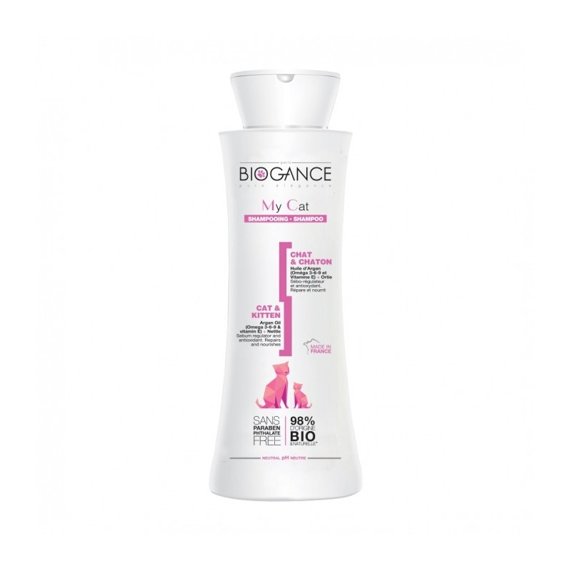 Formulé à partir d'extraits d'huile d'argan et de bouleau aux propriétés réparatrices, nutritives et hydratantes, ce shampoing Biogance My Cat, apportera à votre chat un poil doux, brillant et une peau régénérée.