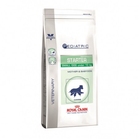 Royal Canin Vet Care Nutrition Pediatic Starter Small Dog est un aliment complet pour les chiennes de moins de 10kg, en fin de gestation et en lactation et pour les chiot au sevrage jusqu’à 2 mois. Cette formule est enrichie en taurine pour aider au développement des systèmes nerveux, oculaire et cardiaque et riche en vitamines et en oméga pour renforcer les défenses immunitaires du chiot.
