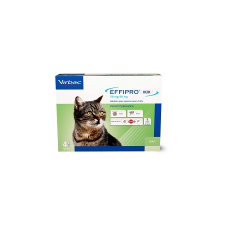 Cartactéristiques des pipettes anti-puce Effipro Duo S/O Chat 1-6 kg