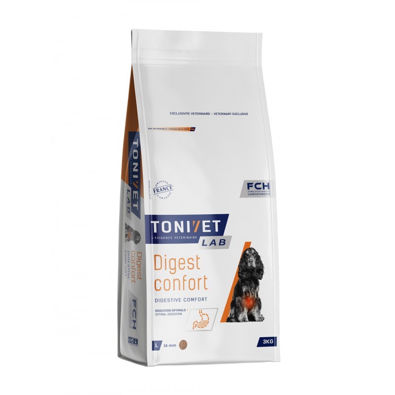 Tonivet chien Digest Confort est une alimentation formulée pour les chiens adultes souffrants de sensibilité digestive.