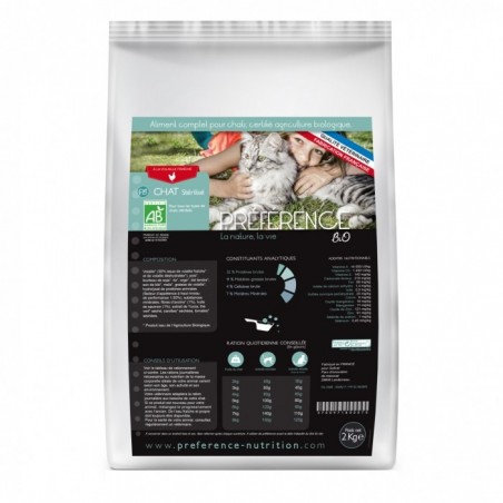 Les croquettes Préférence BIO chat stérilisé sont conçues à partir d'ingrédient biologique 100% naturel et permettent de répondre aux besoins des chats adultes stérilisés.