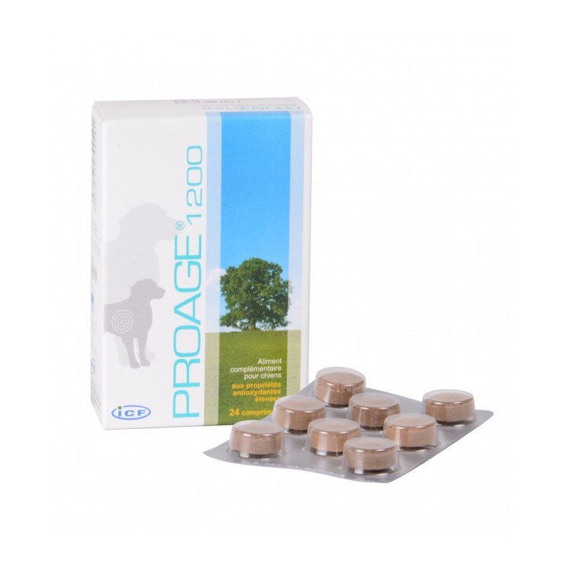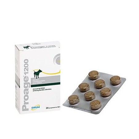 Proage 1200 est un aliment complémentaire antioxydant destiné aux chiens âgés ou sportifs.