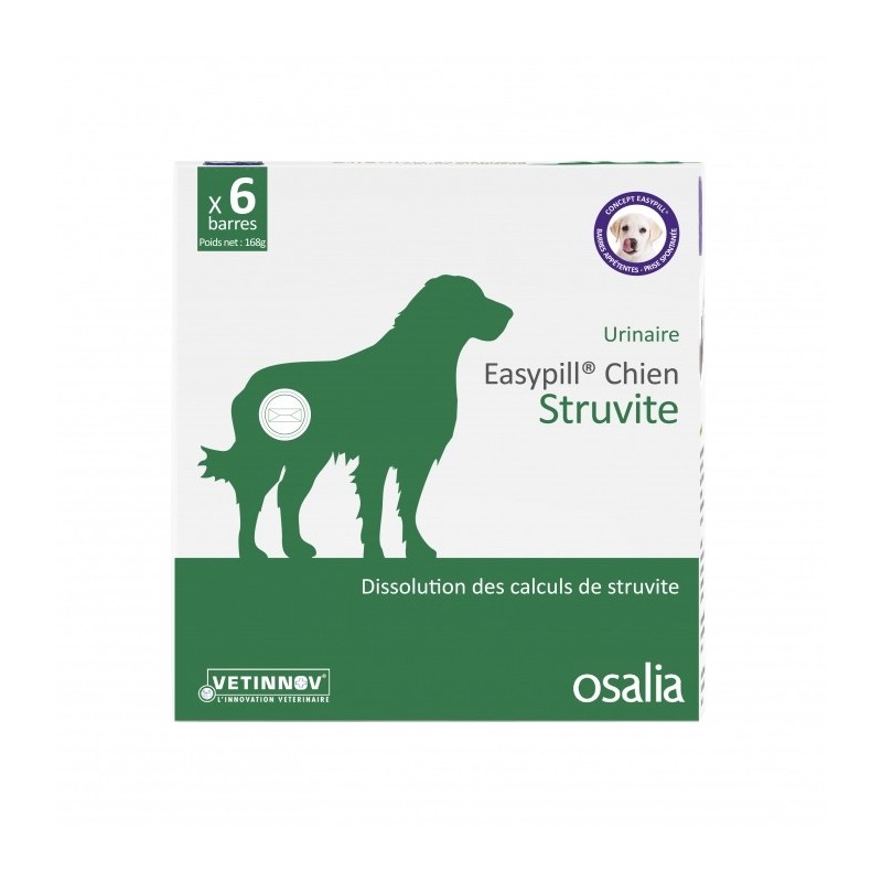 Attention ! Changement de packaging et de nom en cours. Easypill Chien Struvilate devient ainsi Easypill Chien Struviless. Les nouveaux sacs arriveront à épuisement des anciens.
