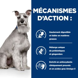Croquettes thérapeutiques Hill's Prescription Diet I/D Low Fat Digestive Boîte pour Chien au Poulet pauvre en graisse et riche en fibres hautement digestible. Destinées aux chiens adultes pour réduire les facteurs de risque de pancréatique, apaiser le tractus gastro-intestinal et rééquilibrer la flore intestinale.
