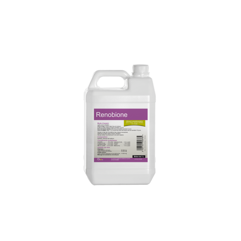 Renobione est un complément alimentaire sous forme de soluion liquide pour pour les veaux. Il participe à la gestion du métabolisme des excès de matière grasse dans l’alimentation des veaux. Pour limiter les risques de stéatose hépatique (engorgement du foie) chez la vache et le veau.