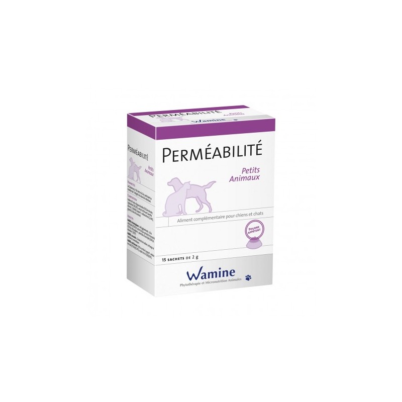 L'aliment complémentaire Wamine Perméabilité fournit un apport de micronutriments qui contribuent au maintien des bonnes fonctions de la muqueuse intestinale, à la protection des cellules de l’organisme contre l’oxydation, au soutien de la fonction immunitaire, et à mieux tolérer l’alimentation de l’animal.