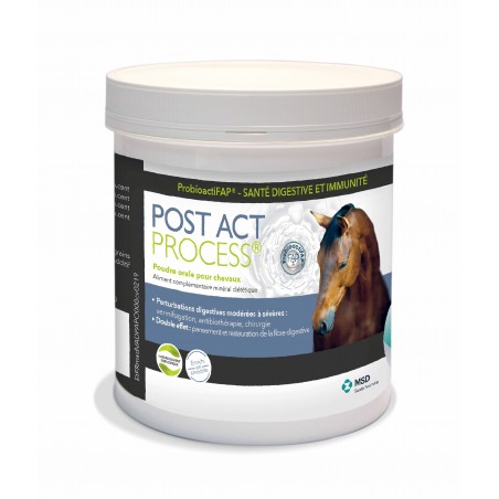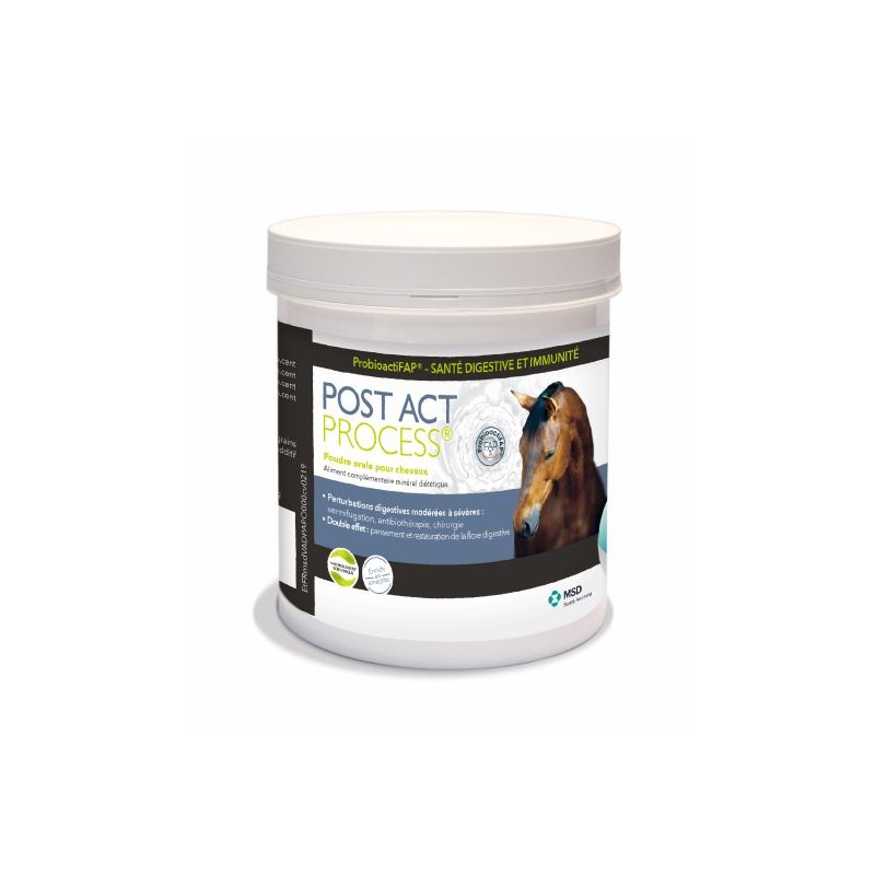 Post Act Process Cheval, un aliment complémentaire minéral diététique formulé pour une récupération nutritionnelle optimale lors de convalescence ou après un stress comme le poulinage, la vermifugation, l'antibiothérapie, le transport, une compétition, une chirurgie, etc...