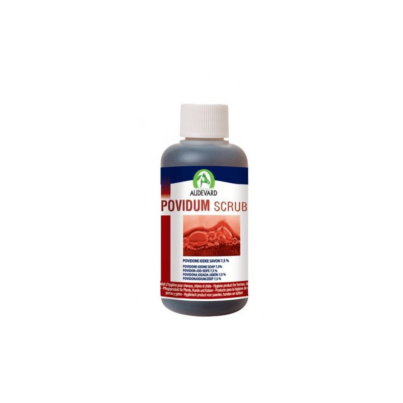 Povidum Scrub, un savon nettoyant et désinfectant des plaies pour les chevaux.