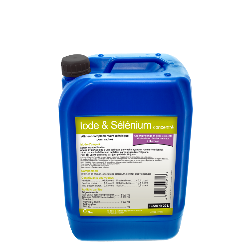 Additifs par litre : Iodure de potassium: 3 000 mg, Selenium E8: 1 000 mg, Vitamine E: 1 000 mg, Antioxygène: 7 mg