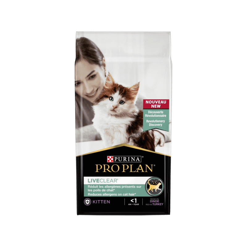 Pro Plan Cat Liveclear Kitten Dinde est une alimentation complète et équilibrée destinée aux chatons de moins d'un an, qui réduit de manière efficace et sans risque les allergènes sur les poils et les squames de chat, dès trois semaines d'utilisation quotidienne.