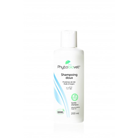 Fabriqué à partir de protéines de blé et d'huile d'argan bio, le shampoing doux Phytobiovet apporte de brillance, du volume et de la douceur. Sa formule riche combinée à son pH physiologique assouplit le poil tout en nourrissant la peau.