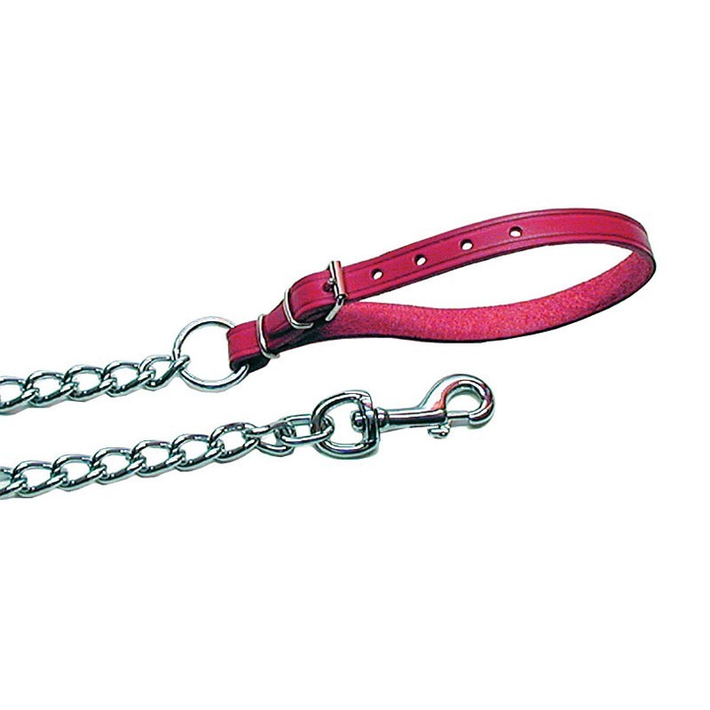 Cette laisse en métal pour chien comprend une poignée ouvrante, en cuir pleine fleur, permettant d’attacher le chien à un support. Ce produit est disponible en plusieurs coloris.