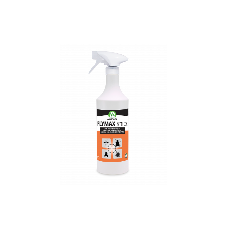 Flymax n'tick est un spray répulsif efficace contre les insectes volants (anti-mouche) et les tiques chez les chevaux.