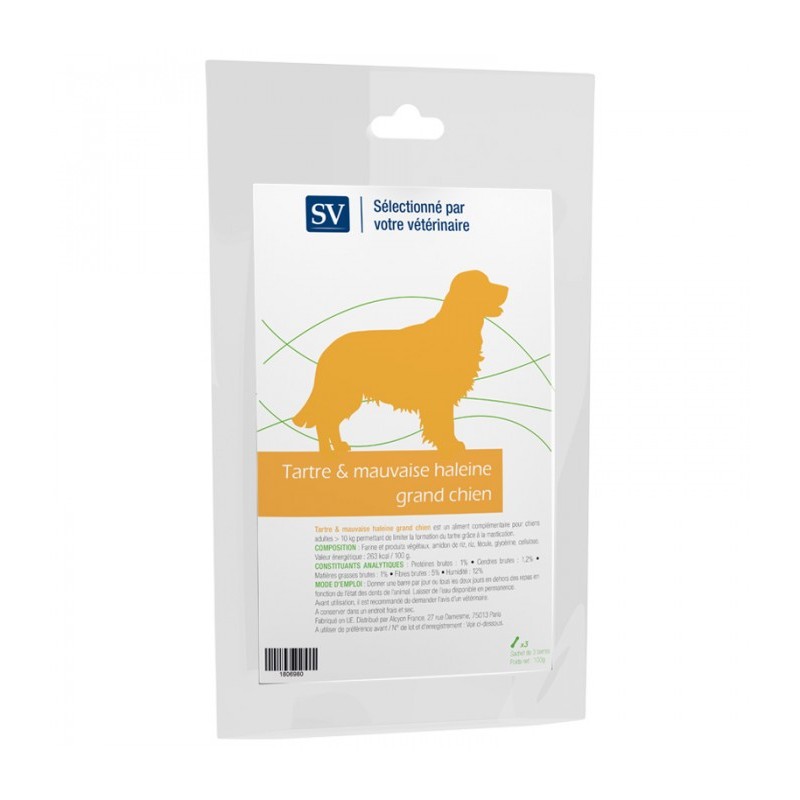 Les friandises Plaisir Tartre pour chien se présentent sous forme de lamelles à mâcher, qui permettent de limiter le dépot du tartre chez le chien grâce à la mastication. Leurs consistances craquante riche en lignocellulose permet d’éliminer les débris alimentaires et de limiter le tartre.