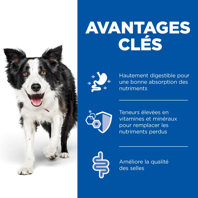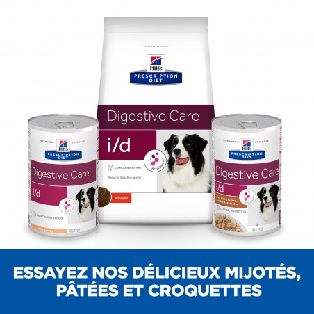 Hill's Prescription Diet Canine I/D AB+ Mijotés réduit les troubles digestifs, améliore la qualité des selles et favorise un transit digestif régulier de votre chien.