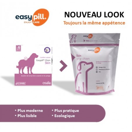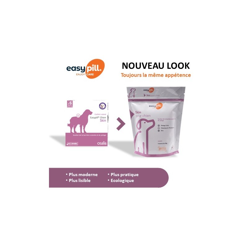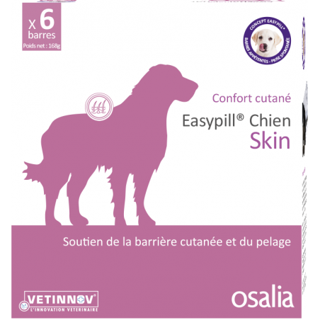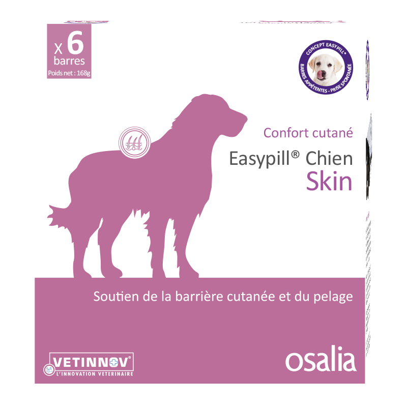 L'aliment complémentaire Easypill Skin permet de soutenir la barrière cutanée et du pelage chez le chien.