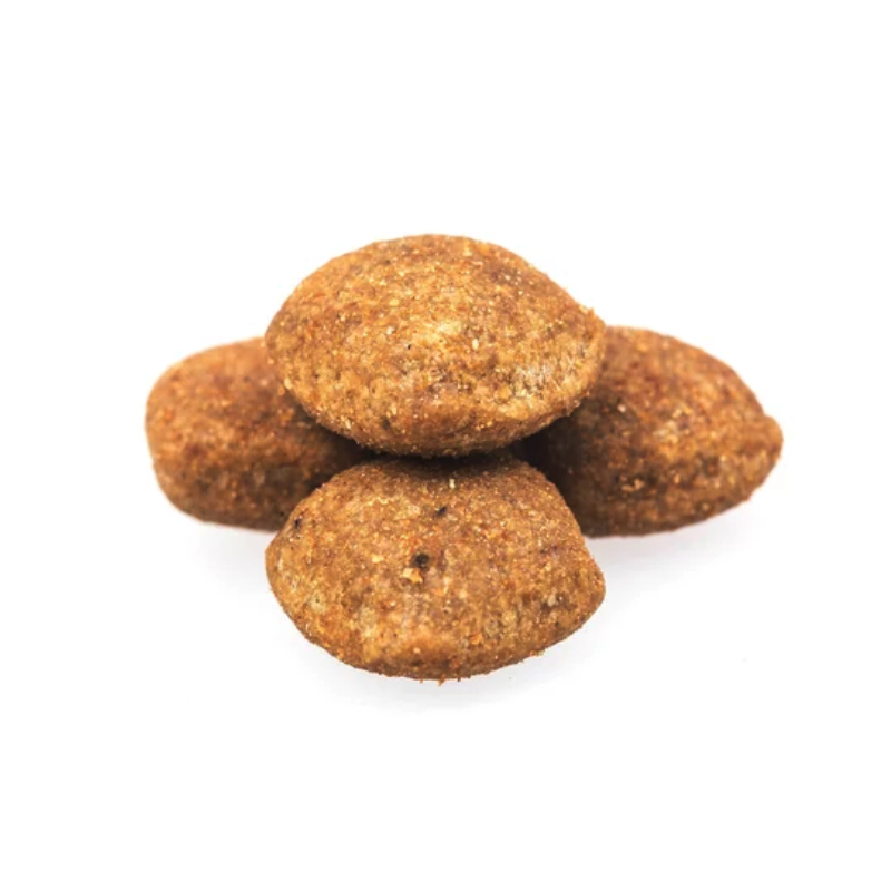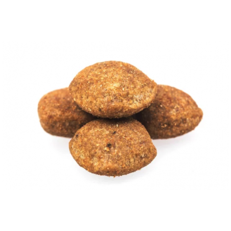 Volaille déshydratée (27%), creton, blé, maïs, graisse de volaille, remoulage, hydrolysat de protéines animales, pulpe de chicorée (FOS)(1%), pulpe de betterave (1%), huile de poisson (0,5%), levure de bière (0,5%), produits issus de fermentation lactique de céréales – procédé exclusif FAP® (Facteurs d’Assimilation Process) (0,5%), poudre de cellulose (0,5%), substances minérales, yucca schidigera (0,01%).