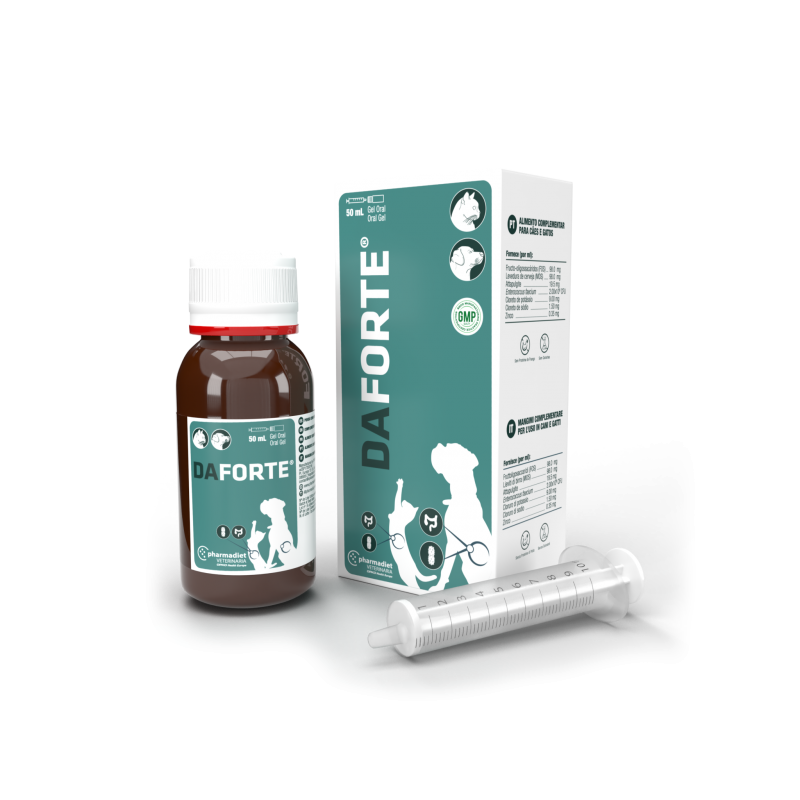 L'aliment complémentaire Daforte est une formule contenant des nutriments qui soutiennent le système gastro-intestinal chez les chiens et les chats.