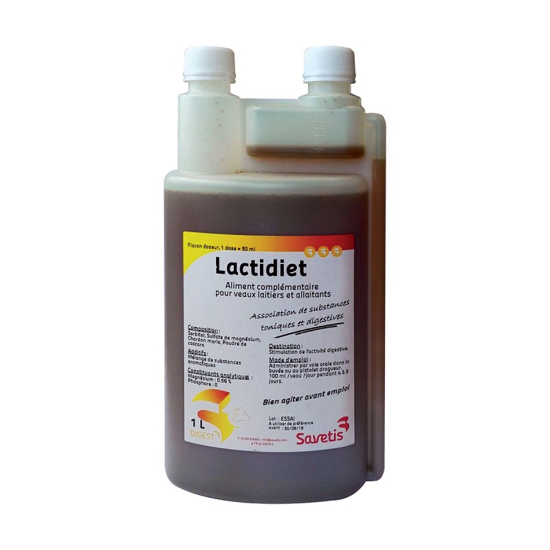 LactiDiet est un complément alimentaire recommandé en situation de blocage du transit et pour stimuler les sécrétions digestives des veaux laitiers et allaitants. Cette solution naturelle à base de plantes est sans délai d’attente.