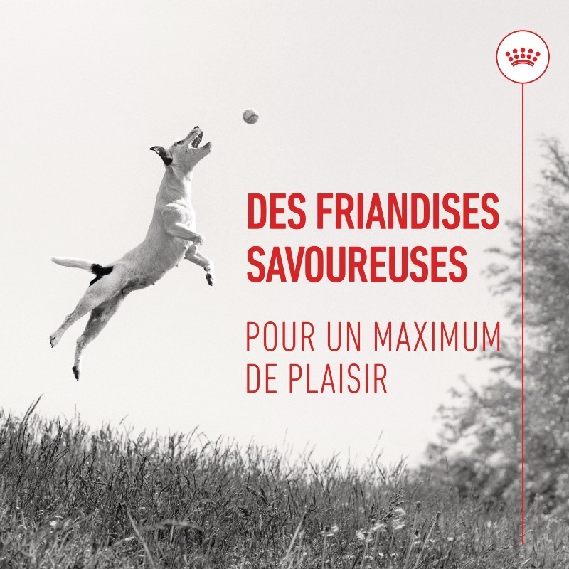 Les friandises ROYAL CANIN sont spécialement formulées pour soutenir la santé cérébrale des chiens grâce au DHA et aux vitamines C et E. Avec moins de 3 calories par unité, elles sont idéales pour une récompense saine et équilibrée, sans compromettre l'alimentation de votre compagnon.