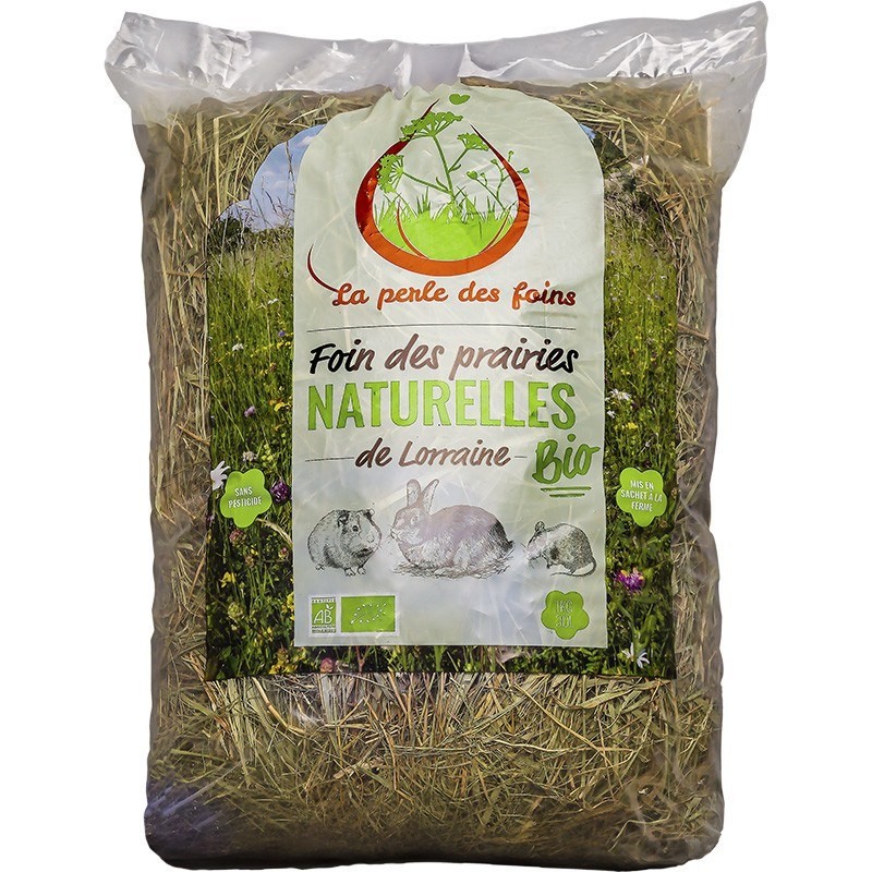 Ce foin de qualité supérieure est issu de prairies fleuries naturelles, riches d'une cinquantaine d'espèces végétales, dont certaines rares ou protégées. Coupé à maturité, il est exempt de pesticides, de semences ajoutées et contient très peu d'engrais. Ce foin, très parfumé, est naturellement riche en vitamines et oligo-éléments. Sa teneur élevée en fibres favorise la mastication, l’usure naturelle des dents et le bon fonctionnement du transit intestinal. Il convient à tous types de rongeurs.