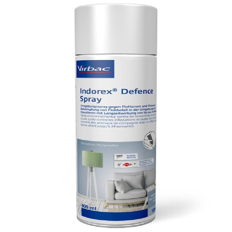 Indorex Defence est un spray environnemental contre les larves et les oeufs de puces. Il permet de lutter contre les infestations de puces dans l’environnement des animaux de compagnie avec un effet à long terme allant jusqu‘à 24 semaines. Indorex Defence Spray contient de la perméthrine, un adulticide, et du pyriproxifène, un inhibiteur de croissance des insectes. Ainsi, tous les stades de développement des puces sont atteints et la lutte est efficace jusqu'à 24 semaines.